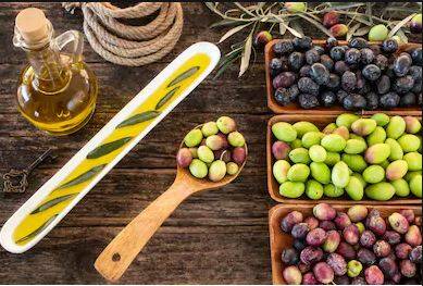 Olive oil known for its many health benefits including cholesterol-lowering and anti-aging.